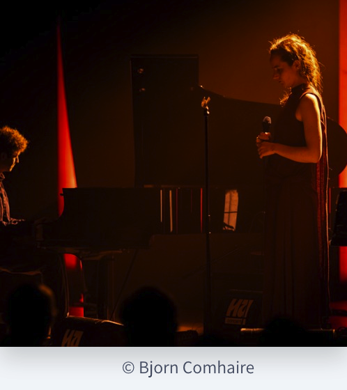 She surrounds herself with eclectic and sensitive musicians who support and accompany her with great talent: guitarist Tim Finoulst and double bassist Yannick Peeters.
