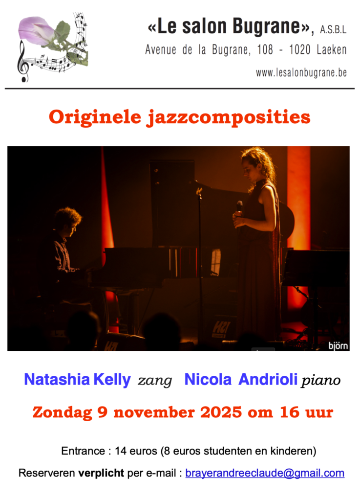 Natashia Kelly (vocale uitvoering, muzikale composities en tekstschrijven) en Nicola Andrioli (piano) Geïnspireerd door Joni Mitchell, Arooj Aftab, Paul Simon, Sting, Christian Wallumrød, Django Bates en door artistieke stromingen geworteld in songwriting en hedendaagse jazz, zijn de composities van Natashia Kelly verankerd in eeuwenoude tradities en tegelijk resoluut toekomstgericht.