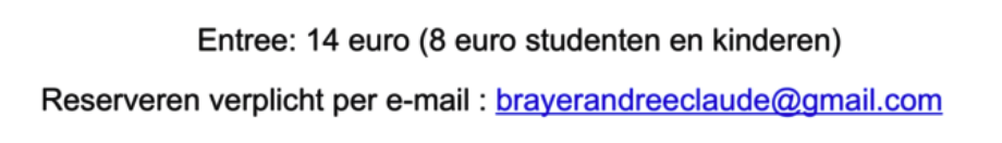 (*) Reserveren verplicht per e-mail : brayerandreeclaude@gmail.com
